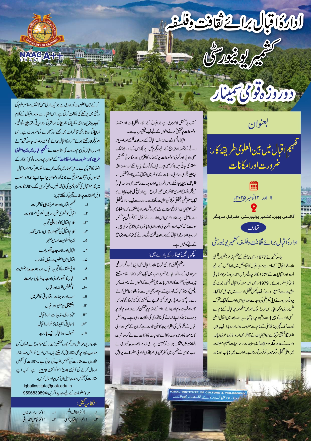 Two-Days National Seminar on "Understanding Iqbal: An Interdisciplinary Approach" shall be held on 11 & 12 Nov 2025